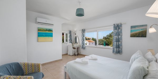 All of our bedrooms have tiled floors with air conditioning or fans. In total four large bedrooms, featuring a large double room with en-suite bath/shower room and dressing room with Sea Views. Then three further twin rooms with either Sea or Garden Views and two further shower rooms. Each room has its own modern and contemporary charm.
